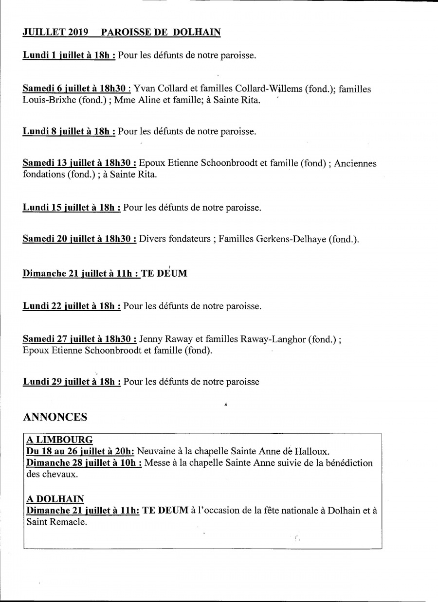 • Horaires dans le doyenné de Verviers
