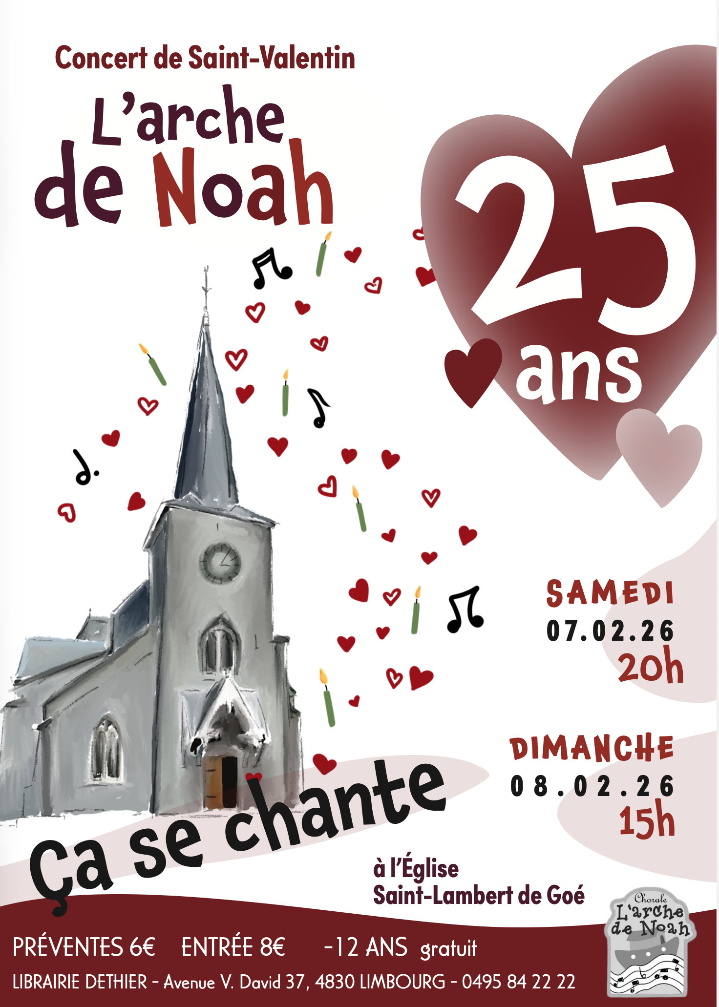 Prix : 6 € en prévente auprès des choristes ou à la librairie Dethier à Dolhain et 8 € sur place, le jour du concert.